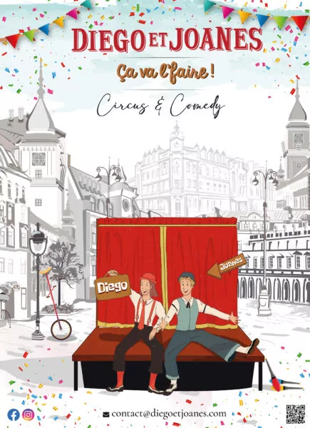 Dimanche 16 août 2026 à 17h, découvrez le spectacle de clowns "Ça va l’faire" de la compagnie Diego & Joanes dans le cadre du festival Place aux Mômes.